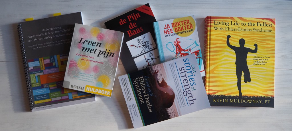 Het nadeel van het hebben van een zeldzame aandoening als Ehlers Danlos Syndromen, is dat er maar weinig over in boeken te vinden is. Nu kun je op website wel het één en ander vinden, maar soms is een boek in je handen ook wel fijn. In de loop van de jaren heb ik mijn boekenkast aangevuld met boeken waar ik met mijn hEDS wel baat bij heb gehad. Niet allemaal over EDS zelf, maar nog steeds nuttig hierbij.