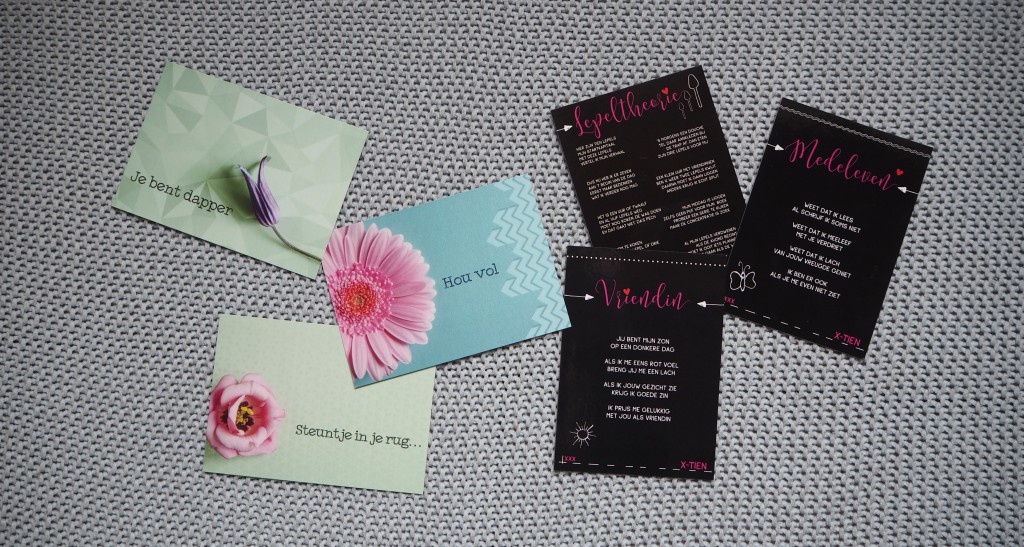 De kaarten van A-typist heb ik gewonnen door een berichtje te retweeten en die van X-tien heb ik gekregen bij een gedichtenbundel die ik ooit bij haar gekocht heb.