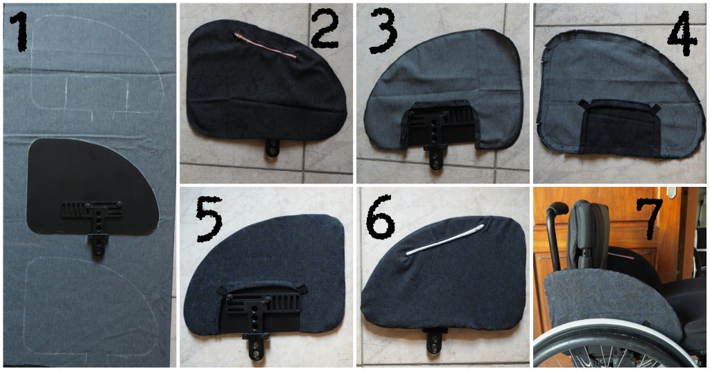 Zoals ik al zei, was deze stof niet heel erg geschikt en is tricot gemakkelijker over de zijschotten te trekken. Aan de andere kant zou de hoes ook van tafelzeil gemaakt kunnen worden. Of alleen het deel aan de buitenkant van de rolstoel, zodat je vuil makkelijk eraf kunt vegen. Dan zou er wel een rits nodig zijn in de naad aan de achterkant.