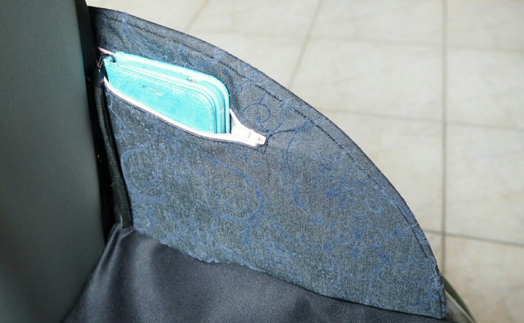 Ik merk nu al dat ik de rits gemakkelijk open kan laten staan. Als ik in de rolstoel zit, zit het toch klem en valt het er niet uit. Je zou dus ook alleen een open vakje kunnen maken. of kleinere vakjes toevoegen, bijvoorbeeld voor je OV-chipkaart.
