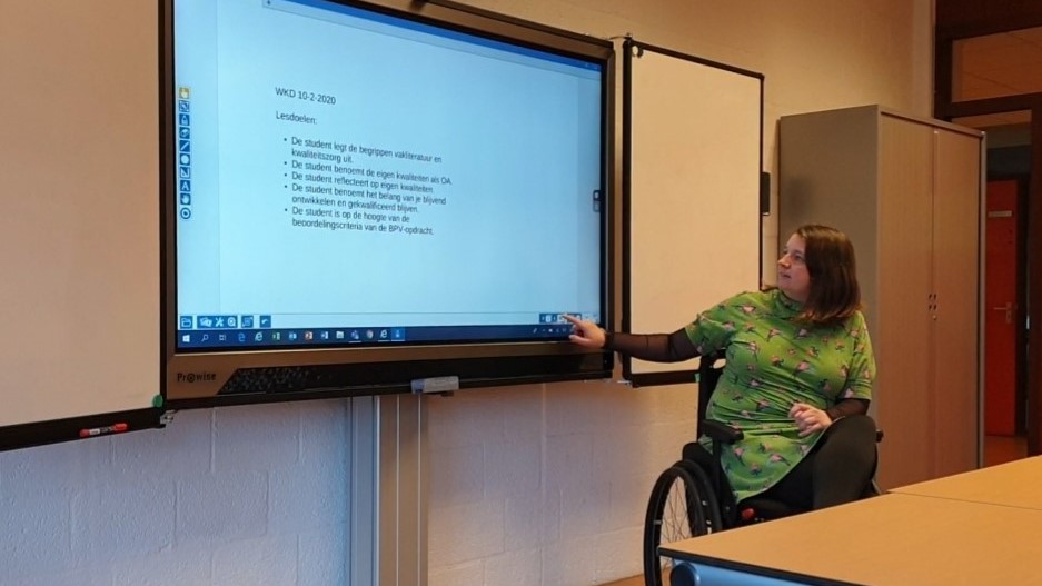 Dit semester ben ik weer wat meer op de (theorie-)lessen ingezet en daar word ik toch wel blij van. Het mooie van mijn werk is dat ik de lesstof die ik overdraag, ook meteen zelf kan gebruiken. Zo geef ik bijvoorbeeld les in het vak ‘Ontwikkeling gestimuleerd’ aan een groep eerstejaars en was het onderwerp van de les het maken van een doelgroepanalyse. Om te laten zien hoe ze die kunnen opstellen, heb ik ze zelf een vragenlijst laten invullen om mij input te geven voor een doelgroepanalyse van hun klas.