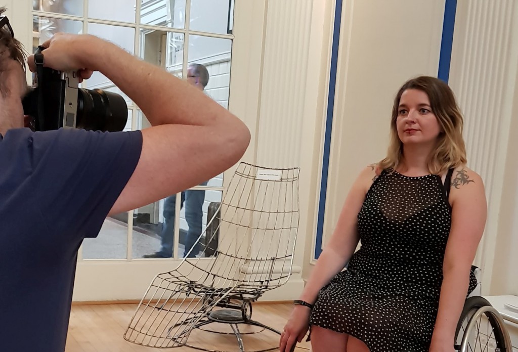 Ik zat in de middaggroep ingedeeld met nog vijf andere modellen. Daarnaast waren er een paar fotografen en wat mensen van de organisatie. Ik kende alleen Christel en Martine van dat clubje, maar voelde me al snel thuis tussen de rolstoelen, silversplints en braces. Het kennismaken en kletsen over van alles en nog wat had van mij nog wel langer mogen duren, maar we moesten aan de slag.
