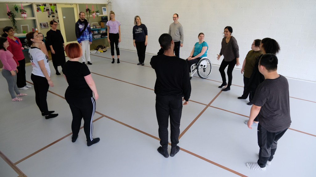 De opening was goed bezocht en er was een vol programma met (korte) voorstellingen van zowel Mangrove als Misiconi. Ontzettend leuk om te zien, maar het leukste vond ik nog wel de workshop die Misiconi gaf. Zelfs letterlijk een hoogtepunt, waar bij een oefening iedereen (die dat wilde) gelift werd door de rest van de groep. Ook ik dus met rolstoel en al, haha!