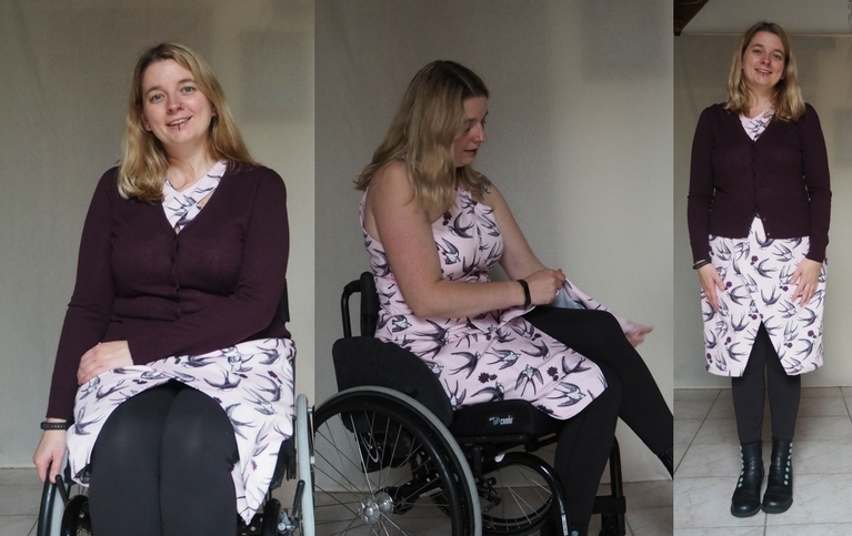 Dus een no go om deze zwaluwenjurk te dragen in mijn rolstoel. Ik zou me er alleen maar heel ongemakkelijk bij voelen de hele tijd.