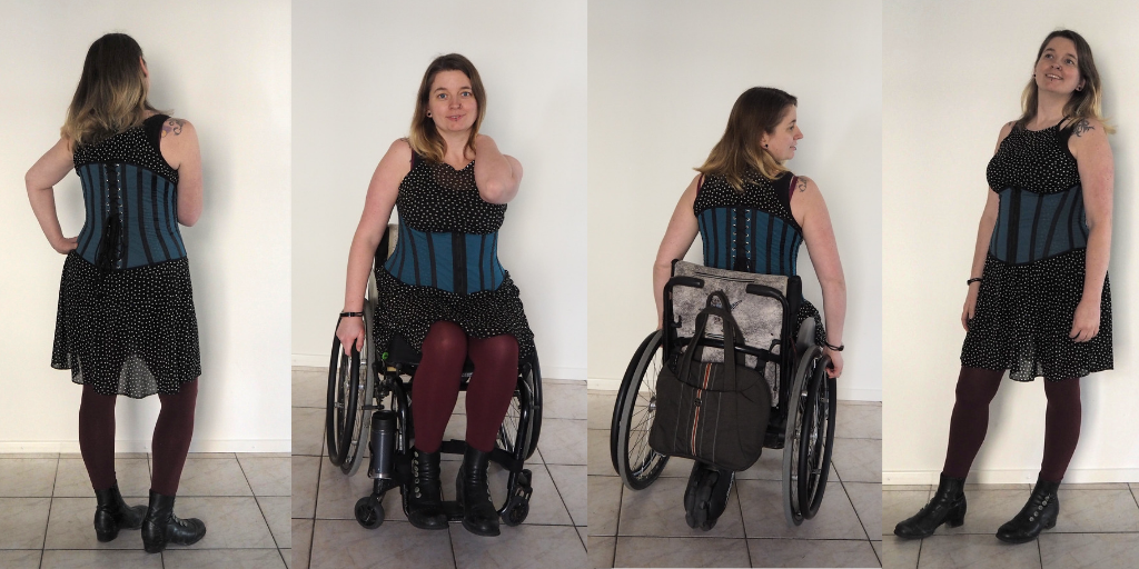 Dit korset zit echt heerlijk. Knelt niet af en geeft genoeg steun in de rug. Ook onder een jurk geeft hij net een beetje meer een getailleerde vorm. Wat je zeker in een rolstoel zo nu en dan wel kunt gebruiken.