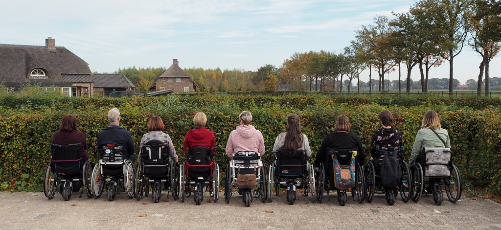 We waren met een groep van 37 personen geloof ik. En dan vooral vrouwen en heel veel rolstoelgebruikers. Qua leeftijd liep het uiteen van twintigers tot zestigers. Maar eigenlijk maakte die leeftijd, wel of geen rolstoel, man of vrouw, helemaal niet uit. Er was een hele fijne sfeer in de groep. Je kon altijd bij een groepje aansluiten en je in het gesprek mengen. En niemand die raar opkeek als je het ene moment een stukje loopt en het andere moment alles rollend doet. Want dat deden er zoveel.